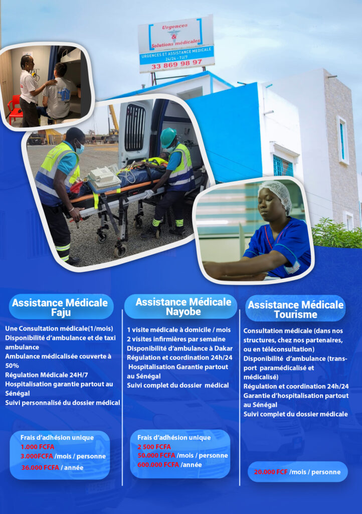 Un accompagnement médical pour vos séjours : consultation, téléconsultation et suivi personnalisé. Transport médicalisé disponible partout au Sénégal avec garantie hospitalisation.
